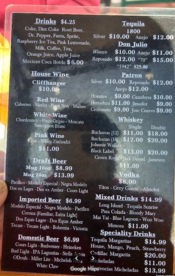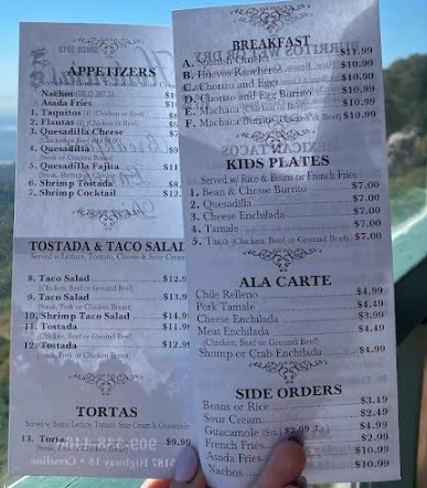 My wife and my friend both had the Cadillac margaritas which they absolutely loved! My chicken burrito was tasty. My wife had two crispy beef tacos, and my friend chili verde. Of course, we sat by the window and had an amazing view for half our meal, and then the fog rolled in blocking it out, which was super cool to watch. All the staff was super courteous and friendly and very attentive.